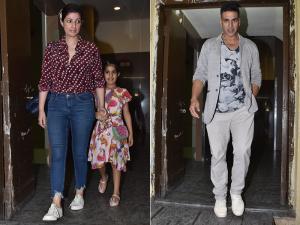 1 / 7बॉलीवुड एक्टर अक्षय कुमार बुधवार को अपनी पत्नी ट्विंकल खन्ना और बेटी नितारा के साथ जुहू के पीवीआर में मूवी एन्जॉय करने के बाद स्पॉट हुए।2 / 7ट्विंकल इन तस्वीरों में बेटी का हाथ पकड़े हुए मरून प्रिंटेड शर्ट और डेनिम जींस में दिखीं, वहीं बेटी नितारा भी प्रिंटेड फ्रोक में नजर आईं।3 / 7अक्षय कुमार हमेशा की तरह अपने सिंपल और कैजुअल लुक में नजर आए। इन तस्वीरों में अक्षय फ्लोरल टी-शर्ट, ग्रे श्रग और मैचिंग ट्राउजर में दिख रहे हैं।4 / 7अक्षय जल्द ही फिल्म 'केसरी' में दिखेंगे। उनकी यह फिल्म इसी महीने होली के खास मौके पर 21 मार्च को सिनेमाघरों में रिलीज़ होगी।5 / 7अनुराग सिंह के डायरेक्शन में बनी फिल्म 'केसरी' में अक्षय के साथ परिणीति चोपड़ा लीड रोल दिखेंगी।6 / 7अक्षय और ट्विंकल की बेटी नितारा अपनी मम्मी का हाथ पकड़े हुए बेहद खूबसूरत दिख रही हैं।7 / 7अक्षय कई बार बेटी के साथ सोशल मीडिया पर भी तस्वीरें शेयर कर चुके हैं।