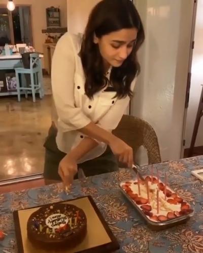 इन तस्वीरों में आलिया केक काटती नजर आ रही हैं। (फोटो-इंस्टाग्राम)