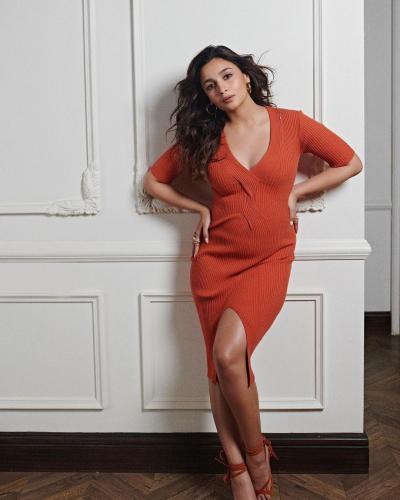 इन तस्वीरों में आलिया ऑरेजं कलर की बॉडीकॉन ड्रेस पहने नजर आ रही है, जिसमे वह काफी गॉर्जियस लग रही हैं। (फोटो: इंस्टाग्राम)