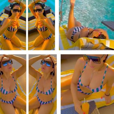इन तस्वीरों में अमीषा पटेल ब्लू बिकिनी में बेहद ग्लैमरस अंदाज में नजर आ रही हैं। (फोटो: इंस्टाग्राम)
