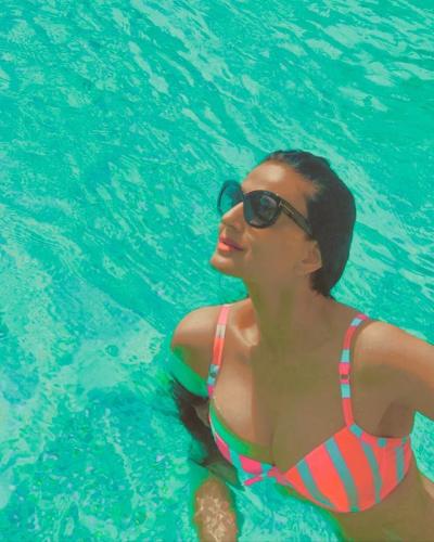 इन फोटोज में अमीषा पटेल स्विमिंग पूल में ग्लैमरस अंदाज में मस्ती करती नजर आ रही हैं। (फोटो: इंस्टाग्राम)