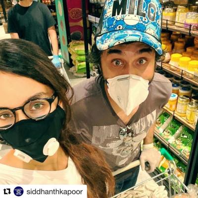 इस तस्वीर में श्रद्धा और सिद्धांत लॉकडाउन के बीच घर के लिए कुछ जरुरी सामान खरीदते हुए दिखाई दे रहे हैं। खरीदारी के दौरान श्रद्धा और सिद्धांत मास्क लगाए और ग्लव्स पहने हुए नजर आ रहे हैं।