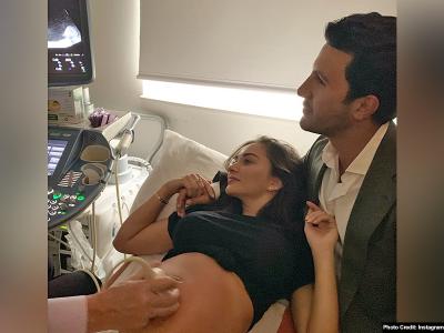 इस तस्वीर में एमी पार्टनर जॉर्ज के साथ अल्ट्रासाउंड करवाती नजर आ रही हैं।