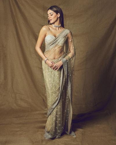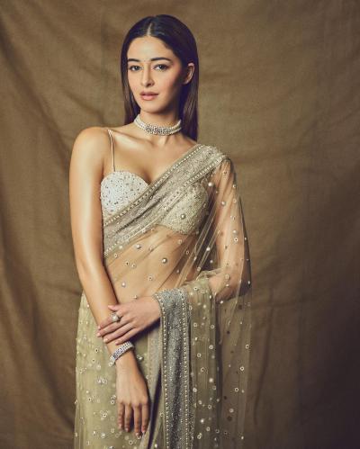 इन तस्वीरों में अनन्या नेटेड ट्रांसपेरेंट साड़ी में बेहद खूबसूरत लग रहीं हैं। (फोटो: इंस्टाग्राम)