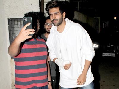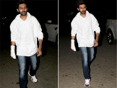 इस स्क्रीनिंग में हाथ में चोट के बावजूद कार्तिक आर्यन पहुंचे थे
