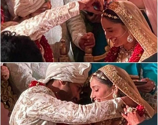 अभिनेत्री वरमाला समारोह के दौरान अपने पति को देखकर भावुक हो गईं।
