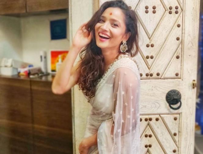 इन तस्वीरों में अंकिता लोखंडे सफेद साड़ी में बेहद खूबसूरत लग रही हैं। (फोटो: इंस्टाग्राम)