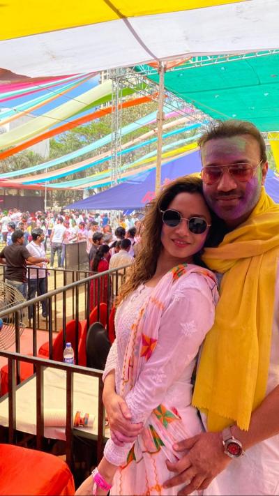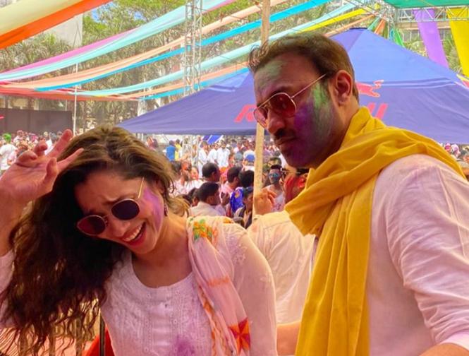 इन तस्वीरों में लोखंडे अपने ब्वॉयफ्रेंड के साथ रंगों में रंगी बहुत ही खूबसूरत लग रही है।