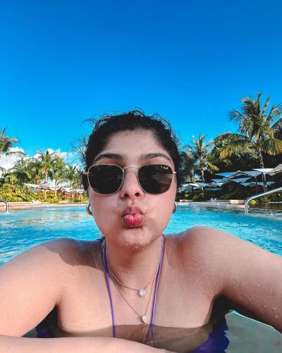 इस तस्वीर में अंशुला बिकिनी पहने हुए पूल में मस्ती करती हुई नजर आ रही हैं। इसके साथ ही उन्होंने ब्लैक कलर का गॉगल्स लगाया हुआ हैं। (फोटो: इंस्टाग्राम)