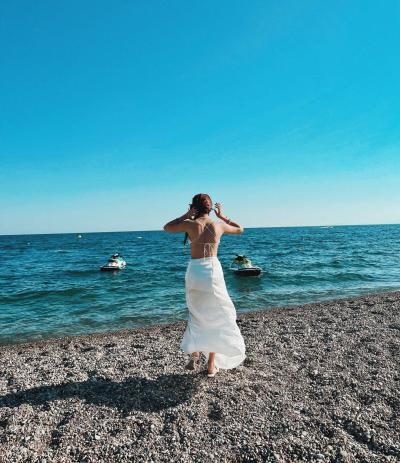 इन तस्वीरों में अवनीत कौर व्हाइट कलर की रिवीलिंग ड्रेस पहने बीच में एन्जॉय करती हुई नजर आ रही हैं। (फोटो: इंस्टाग्राम)