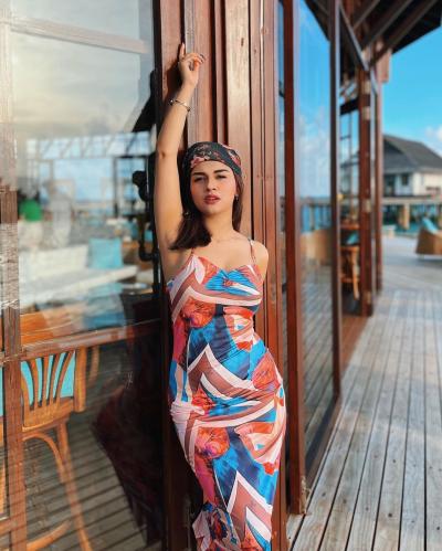 इन तस्वीरों में अवनीत कौर कलरफुल वन पीस गाउन पहने नज़र आ रही हैं। (फोटो: इंस्टाग्राम)