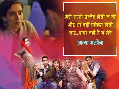 2. मम्मी प्रेग्नेंट है मेरी...मम्मी मतलब तेरी मम्मी...नहीं तो क्या तेरी मम्मी! - आयुष्मान खुराना और सान्या मल्होत्रा।