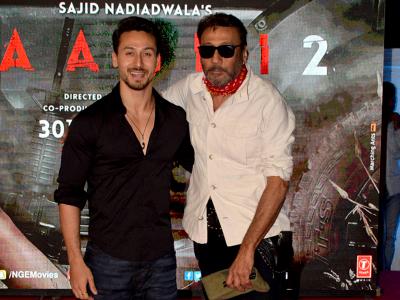 बागी 2 की स्क्रीनिंग में टाइगर श्रॉफ अपने पिता जैकी श्रॉफ के साथ नजर आए।