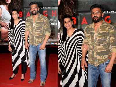 सुनील शेट्टी अपनी पत्नी माना शेट्टी शेट्टी के साथ आए नजर।