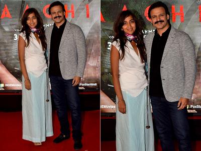 विवेक ओबेरॉय अपनी पत्नी प्रियंका अल्वा ओबेरॉय स्क्रीनिंग में दिखे।