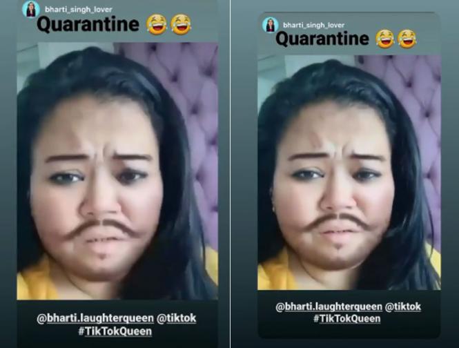 इस फनी टिक टॉक वीडियो में भारती सिंह तकिए के पीछे अपना चेहरा छुपा रही हैं। (Photo: Instagram)