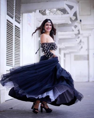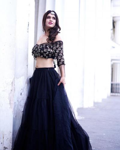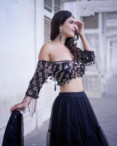 इन तस्वीरों में नेहा ने ब्लैक कलर का लहंगा पहना है। इस लुक में नेहा डाउन शोल्डर और बैकलेस ब्लाउज के साथ स्कर्ट पहन रखी हैं। (फोटो: इंस्टाग्राम)