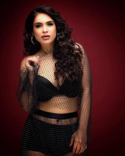 इन तस्वीरों में नेहा मलिक ने ब्लैक कलर की ब्रालेट पहनी हुई है, इसके साथ उन्होंने जालीदार टॉप और शॉर्ट्स पहने हुए नजर आ रही हैं। (फोटो: इंस्टाग्राम)