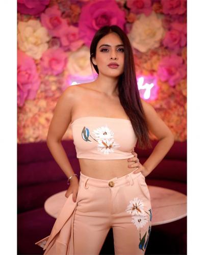 लेटेस्ट फोटोशूट में नेहा मलिक पीच कलर के ट्यूब टॉप ब्लेजर और पेंट में नजर आ रही हैं। (फोटो इंस्टाग्राम)