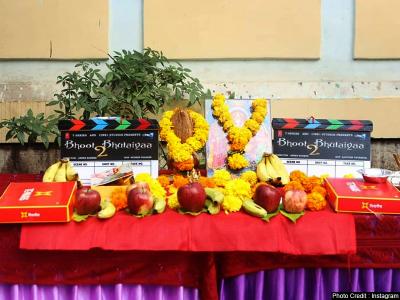 'भूल भुलैया 2' की शूटिंग हुई शरू, सेट पर पूजा करते नजर आए सितारे
