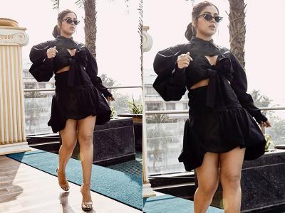 हाल ही में Bhumi Pednekar फिल्म प्रमोशन के दौरान ब्लैक ग्लैमरस लुक में नजर आईं।