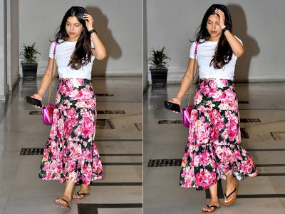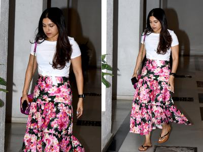 इस दौरान भूमि सफेद टॉप के साथ कलरफुल लॉन्ग स्कल्ट में नजर आईं।