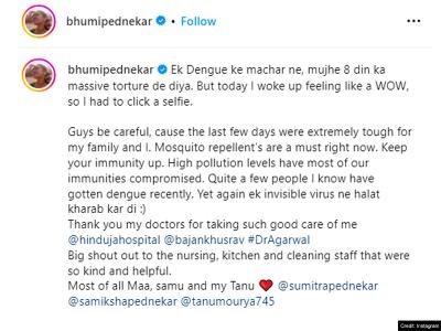 Bhumi Pednekar Dengue: डेंगू की चपेट में आईं एक्ट्रेस, पोस्ट में बताया अब कैसी है हालत