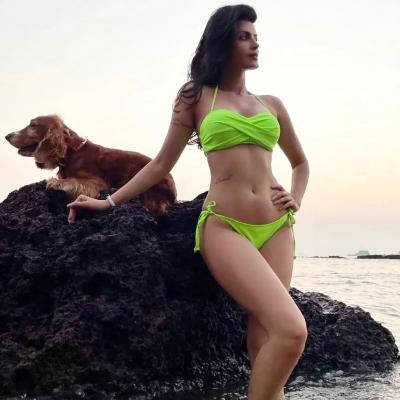 सोनाली राउत ने नियॉन ग्रीन कलर की बिकिनी में अपने कर्व्स फ्लॉन्ट करती हुई दिख रही हैं। (फोटो: इंस्टाग्राम)