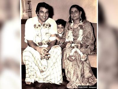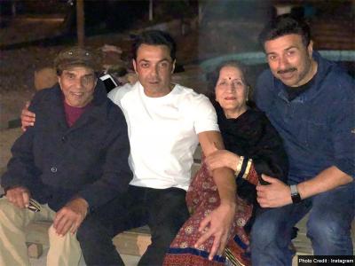 पिता धर्मेंद्र, मां प्रकाश कौर और भाई सनी देओल के साथ कुछ इस अंदाज में पोज देते हुए बॉबी देओल।