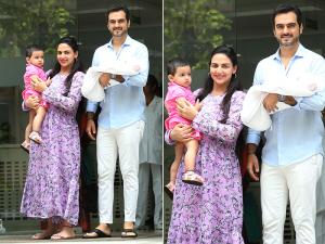 1 / 6बॉलीवुड एक्ट्रेस ईशा देओल दूसरी बार मां बनीं। उन्होंने बेटी को जन्म दिया है। ईशा देओल और उनके पति भरत तख्तानी ने बेटी का नाम मिराया रखा है।2 / 6गुरुवार दोपहर करीब 12 बजे ईशा और भरत तख्तानी न्यू बोर्न बेबी मीराया के साथ अस्पताल के बाहर नजर आए। इस दौरान ईशा अपनी बड़ी बेटी राध्या को गोद में लिए थीं, वहीं भरत छोटी बेटी मीराया को थामे नजर आए।3 / 6मीराया का जन्म सोमवार 10 जून को मुंबई के हिंदुजा हॉस्पिटल में हुआ था।4 / 6दूसरी बेटी के जन्म पर एशा ने कहा था, 'मैं और भरत बहुत खुश हैं । हमें खुशी है कि हमारे परिवार में दूसरी बेटी आई है । भरत लकी हैं कि उनके आस-पास अब तीन महिलाएं होंगी ।5 / 6एक अंग्रेजी एंटरटेनमेंट वेबसाइट से बातचीत में ईशा ने अपनी दोनों बेटियों के नाम का मतलब बताया, उन्होंने कहा 'जब भगवान कृष्ण राधा की आराधना करते हैं, तो उसे राध्या कहते हैं। वहीं मीरा का मतलब भगवान कृष्ण की भक्त है। दोनों बेटियों के नाम में कुछ समानता है और जब दोनों एक साथ साउंड करते हैं तो मुझे अच्छा लगता है।'6 / 6ईशा देओल की शादी बिजनेसमैन भरत तख्तानी के साथ 2012 में हुई थी। मिराया के अलावा ईशा और भरत की एक और बेटी है राध्या।