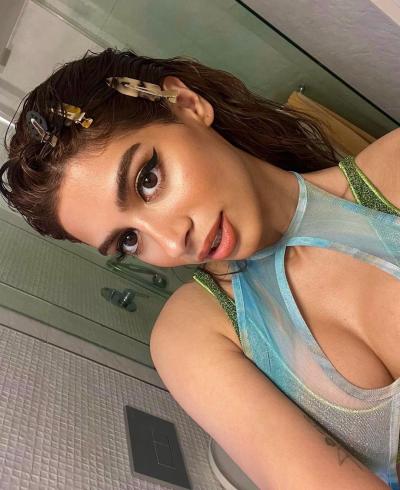 इन तस्वीरों में खुशी कपूर ब्लू कलर का डीपनेक टॉप पहना हुआ है और साथ में मेकअप भी किया हुआ हैं। (फोटो: इंस्टाग्राम)