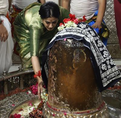 रवीना टंडन ने गर्भ गृह में विधि-विधान के साथ भगवान महाकाल का जलाभिषेक किया। (फोटो: इंस्टाग्राम)