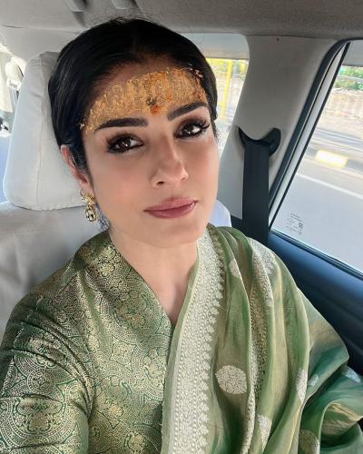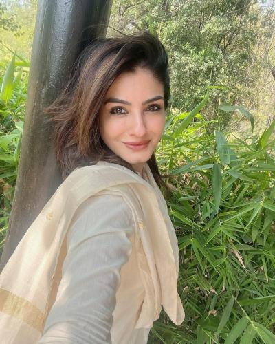 पूजा के बाद पत्रकारों से बात करते हुए रवीना टंडन ने कहा कि, उन्होंने देश में सभी की सुख-समृद्धि की कामना की हैं। (फोटो: इंस्टाग्राम)
