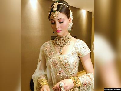 उर्वशी रौतेला ने इन तस्वीरों में दुल्हन वाला लंहगा पहना हुआ है।