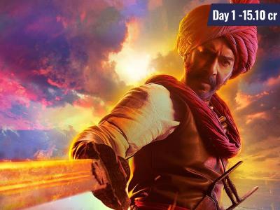 वही दूसरी तरफ अजय देवगन की 'तान्हाजी: द अनसंग वॉरियर' ने पहले दिन 15.10 cr की कमाई की है।