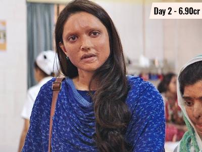 ‘छपाक’ ने दूसरे दिन शनिवार को 6.90 करोड़ रुपये की कमाई की है। फिल्म ने दो दिन में 11.67 cr का बिजनेस कर लिया है।