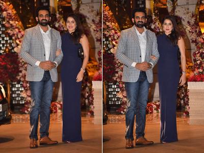 जहीर खान अपनी सागरिका घाटगे के साथ बधाई देने पहुंचे।