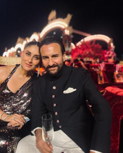 वहीं एक्टर सैफ अली खान ब्लैक कोर्ट पेंट में बेहद स्टाइलिश अंदाज में नजर आ रहे हैं, फैंस को दोनों की जोड़ी बेहद पसंद आ रही है। (फोटो- इंस्टाग्राम)