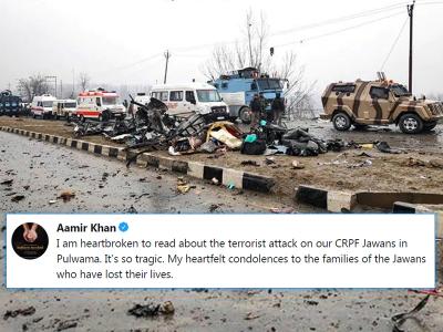 आमिर खान ने ट्वीट किया कि, 'पुलवामा में हमारे सीआरपीएफ जवानों पर हुए आतंकवादी हमले के बारे में पढ़कर मैं स्तब्ध हूं। यह बहुत दुखद है।