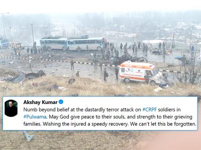 अक्षय कुमार ने इस घटना पर लिखा कि पुलवामा में सीआरपीएफ जवानों पर इस नृशंस आतंकी हमले पर विश्वास नहीं हो पा रहा है, हम इसे कभी नहीं भूल सकते