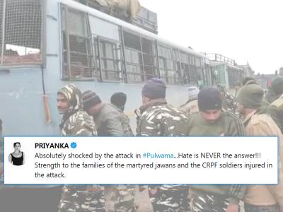 यंका चोपड़ा इस हमले पर सकते में नजर आईं. पुलवामा में हुआ आतंकी हमला हैरान करने वाला, नफरत का कोई जवाब नहीं होता है। भगवान, हमले में शहीद हुए सीआरपीएफ के जवानों और उनके परिवार को मजबूती प्रदान करे