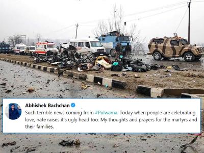 अभिषेक बच्चन ने सोशल मीडिया पर लिखा है कि आज जब हम प्यार का दिन सेलिब्रेट कर रहे हैं, नफ़रत ने अपना सिर उठा दिया है जो बहुत ही घिनौना है। शहीदों को मेरा नमन।