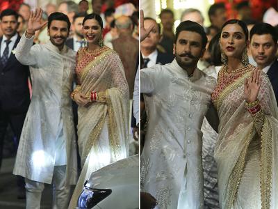 सबकी निगाह दीपिका-रणवीर पर टिकी रही, दोनों एक दम देसी अंदाज में बेहद खूबसूरत नजर आए