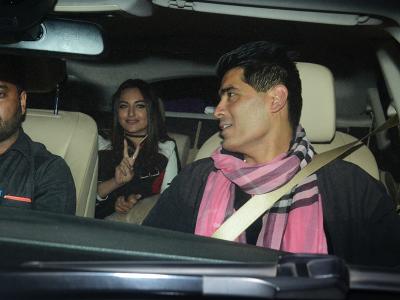 फैशन डिजाइनर मनीष मल्होत्रा के साथ सोनाक्षी सिन्हा भी आईं नजर।