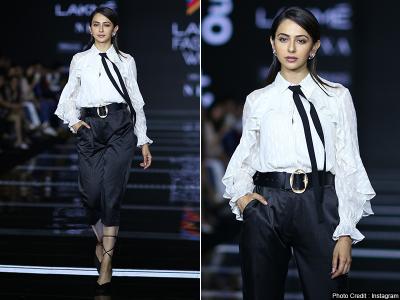 पैंट, शर्ट और टाई में रकुल प्रीत सिंह लग रही है खूबसूरत।