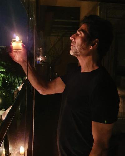 अक्षय कुमार देश के कामों में हमेशा आगे बढ़कर हिस्सा लेते हैं। इस मौके पर अक्षय ने दीये जलाकर एकता का संदेश दिया।