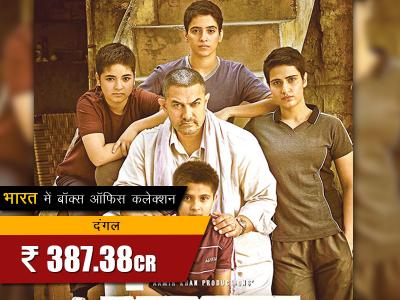 भारत में बॉक्स ऑफिस कलेक्शन फिल्म 'दंगल'- 387.38 करोड़