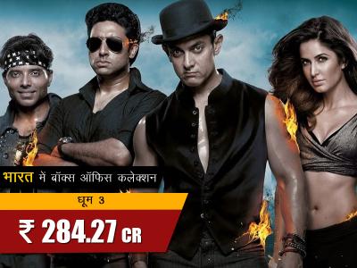 भारत में बॉक्स ऑफिस कलेक्शन फिल्म 'धूम 3'-284.27 करोड़