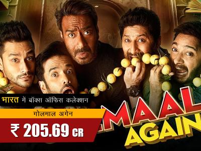 भारत में बॉक्स ऑफिस कलेक्शन फिल्म 'गोलमाल अगेन'-205.69 करोड़