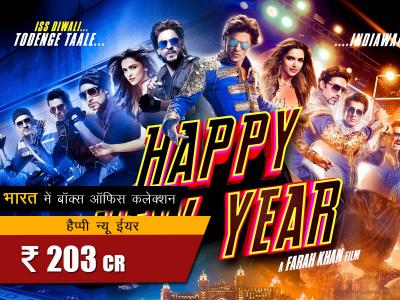 भारत में बॉक्स ऑफिस कलेक्शन फिल्म 'हैप्पी न्यू ईयर'-203 करोड़